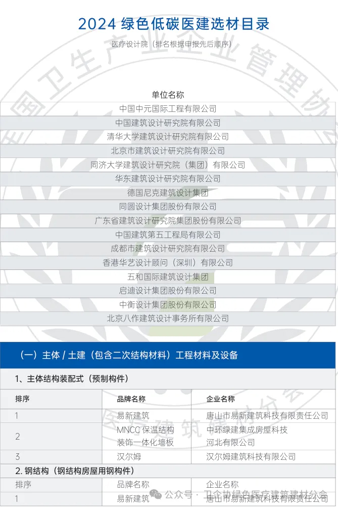 《2024綠色低碳醫(yī)建選材目錄》盛大發(fā)布,或?qū)O大解決綠色醫(yī)建選材難題!